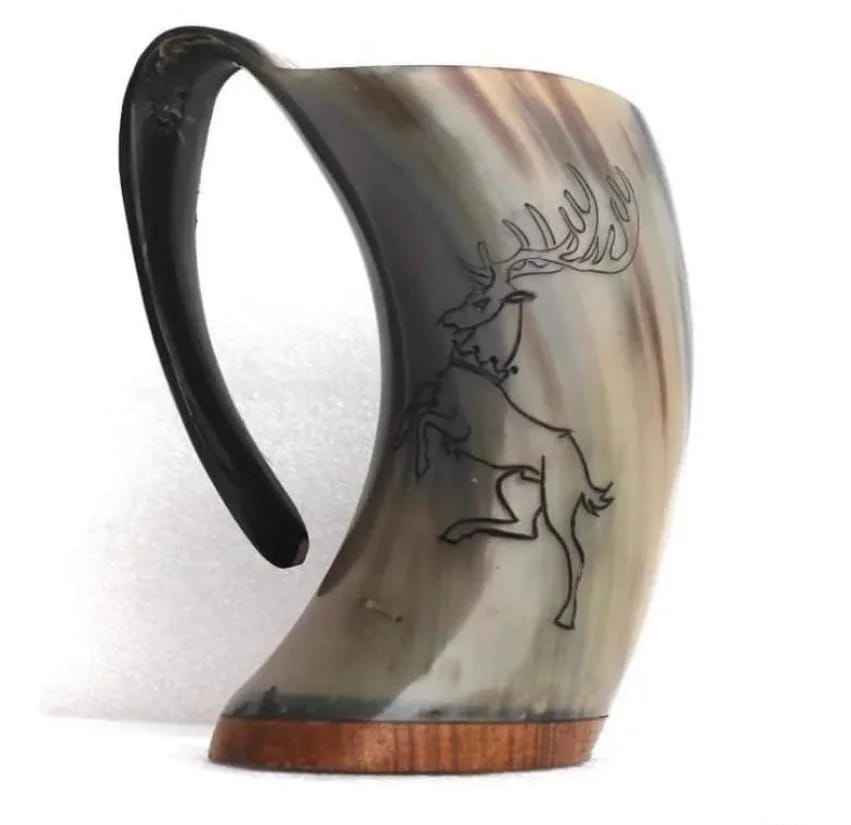 J N Crafts Black Viking Drinking Horn Mug White Thor Hammer Carving Handcrafted Natural Horn Customizable for