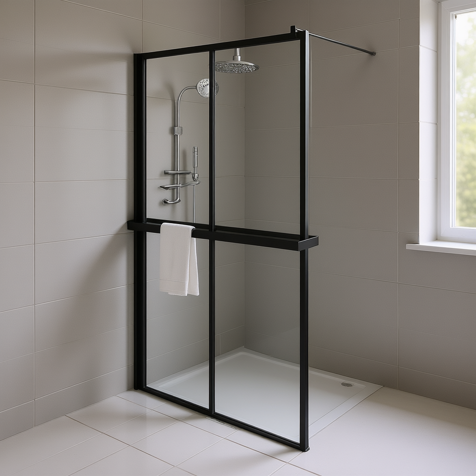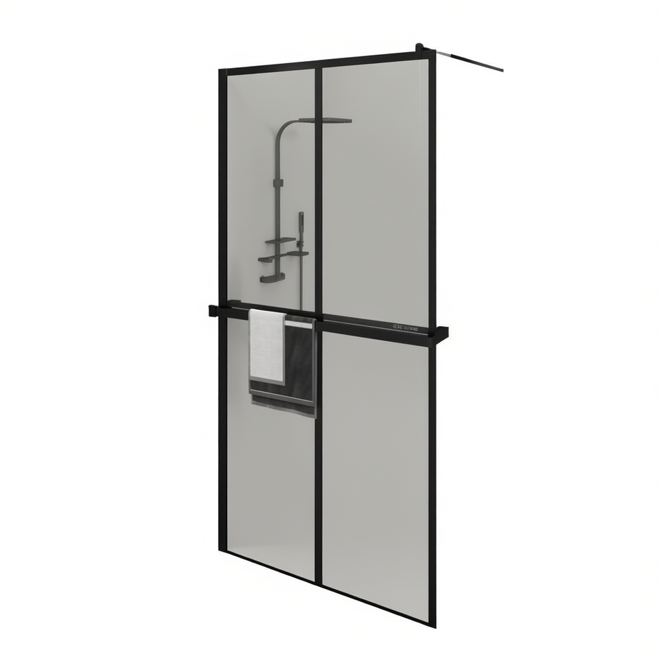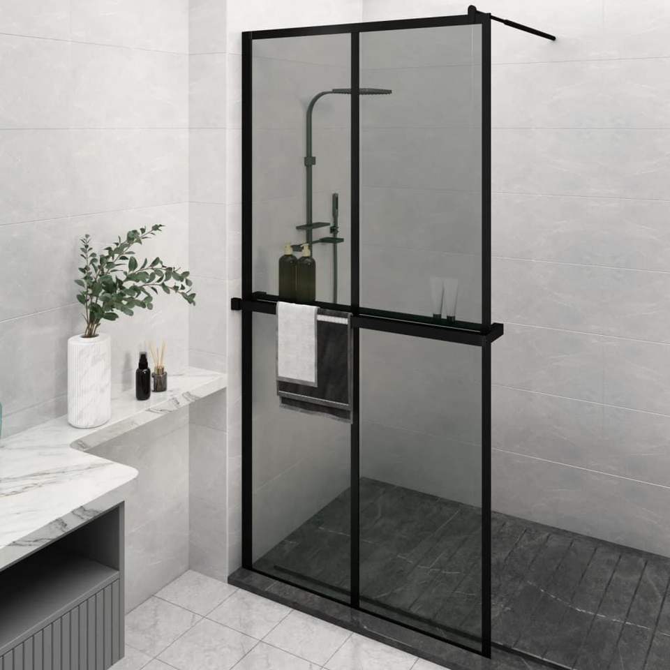 Porte de douche noire à entrée directe 46,5x74,8 po en verre ESG avec cadre en aluminium coulissant, design rectangulaire minimaliste