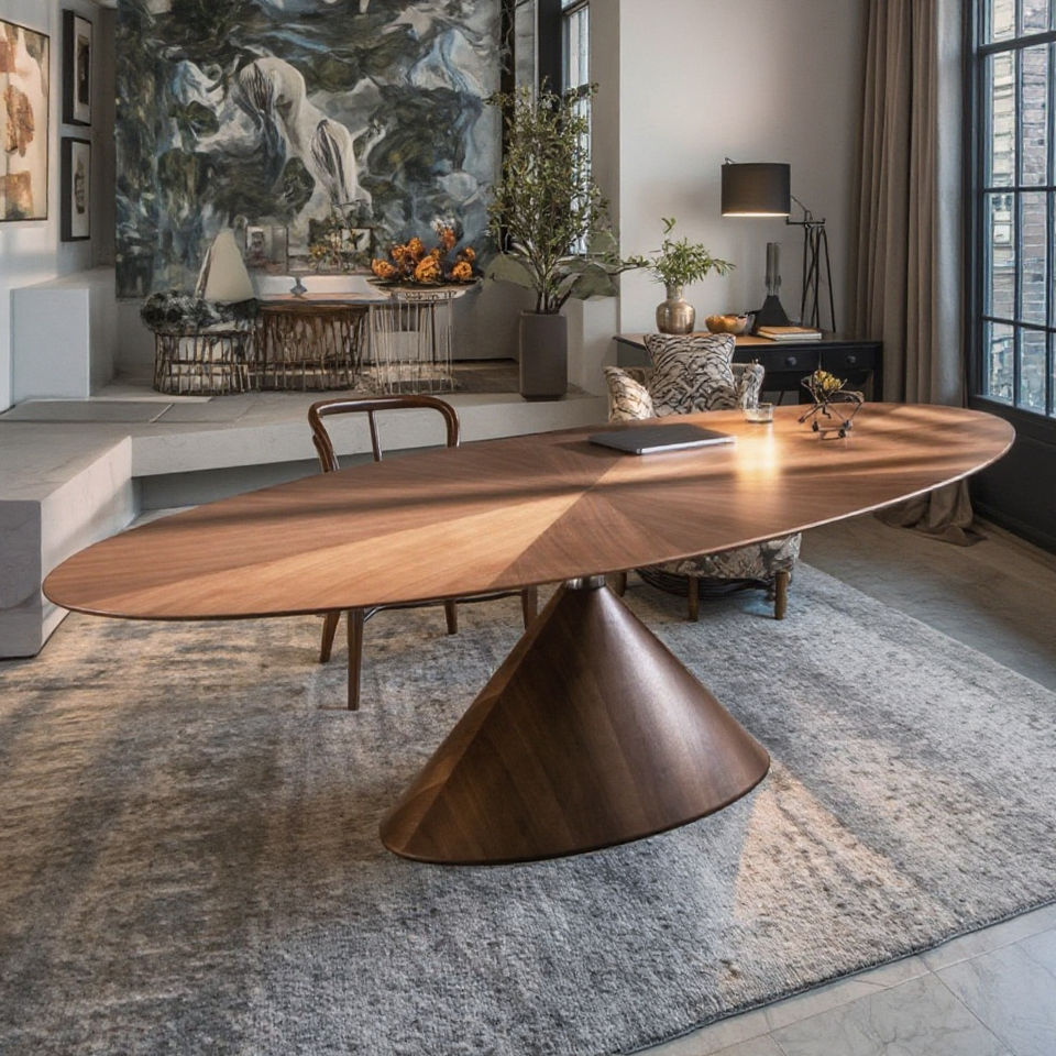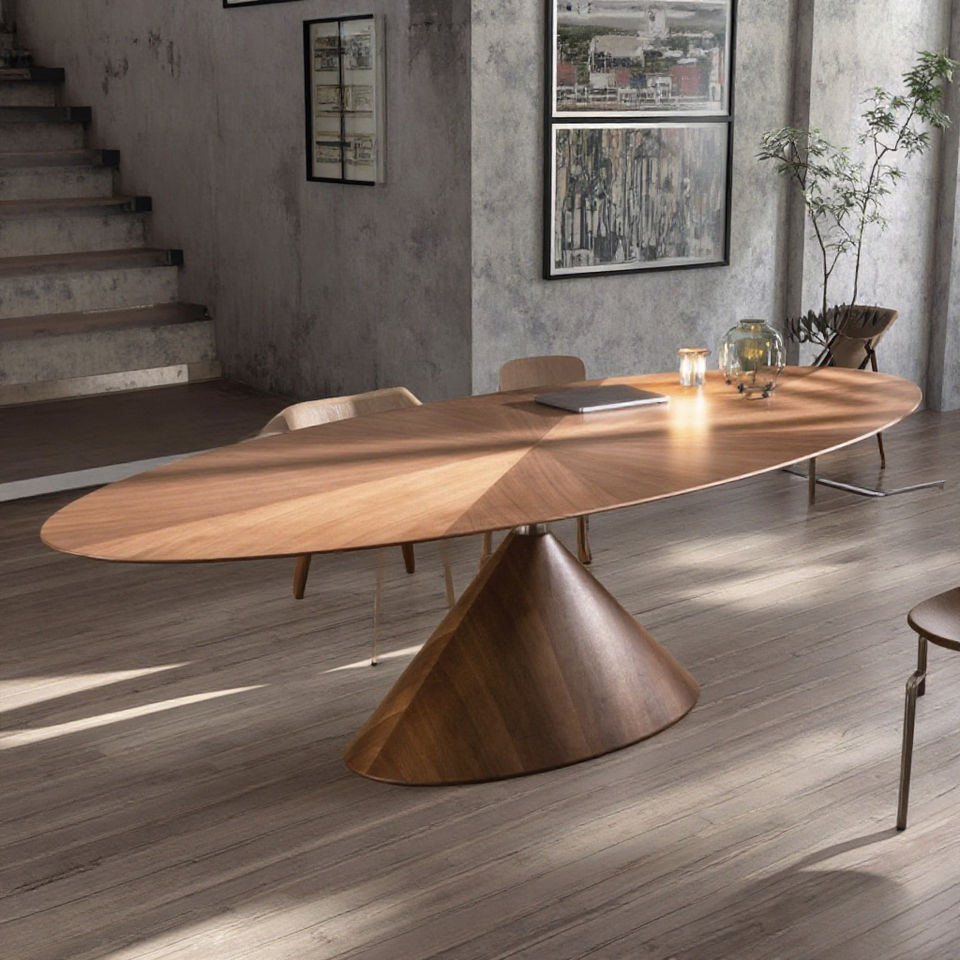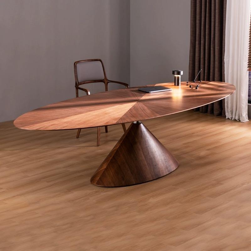 Plateau d'équilibre en noyer noir, meubles entièrement en bois massif, design minimaliste italien, table ovale de grande taille