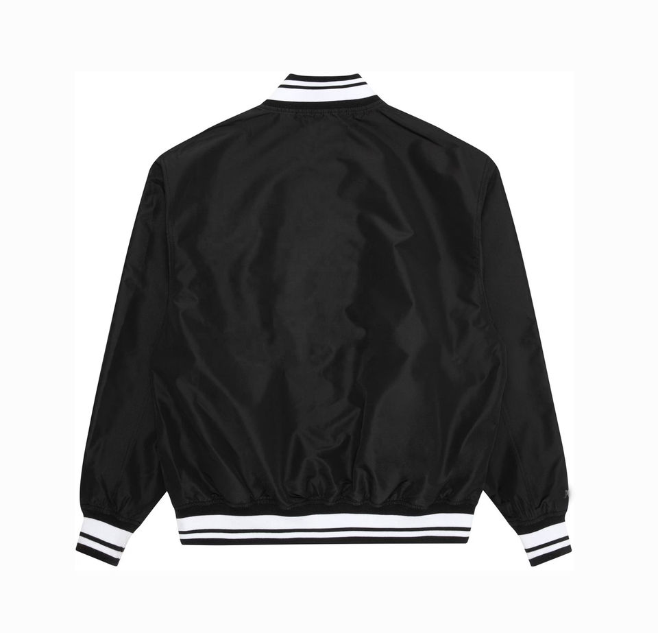 Blouson aviateur noir blanc boutonné Streetwear léger avec poignets à col rayé et ourlet doublure intérieure douce vêtements d'extérieur décontractés