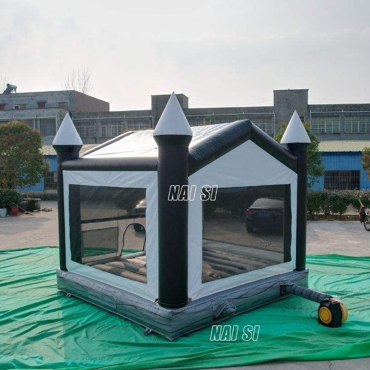 Château gonflable noir et blanc pour mariage, maison de rebond moderne pour enfants, idéal pour photomaton et décoration d'événements