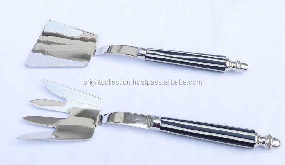 Ensemble de service en acier inoxydable plaqué argent avec poignée en résine noire avec doublure blanche