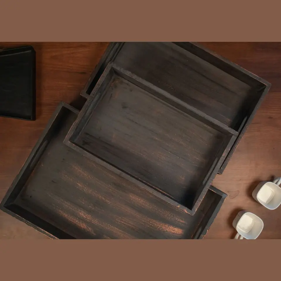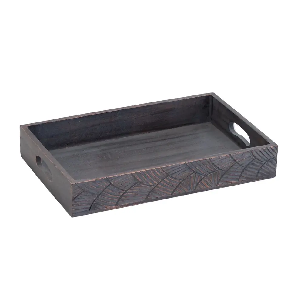 Black Wood Intricate Carved Floral Decorative Tray or Kezevel Wooden Serving Tray is a rectangular tray made