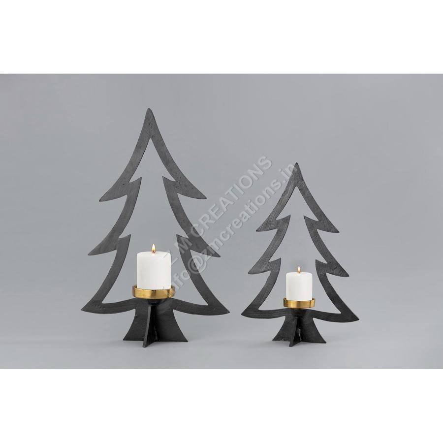 Ensemble de 2 porte-bougies en métal doré au design moderne d'arbre de Noël noir, écologiques, pour mariage et décoration de Noël, faits à la main