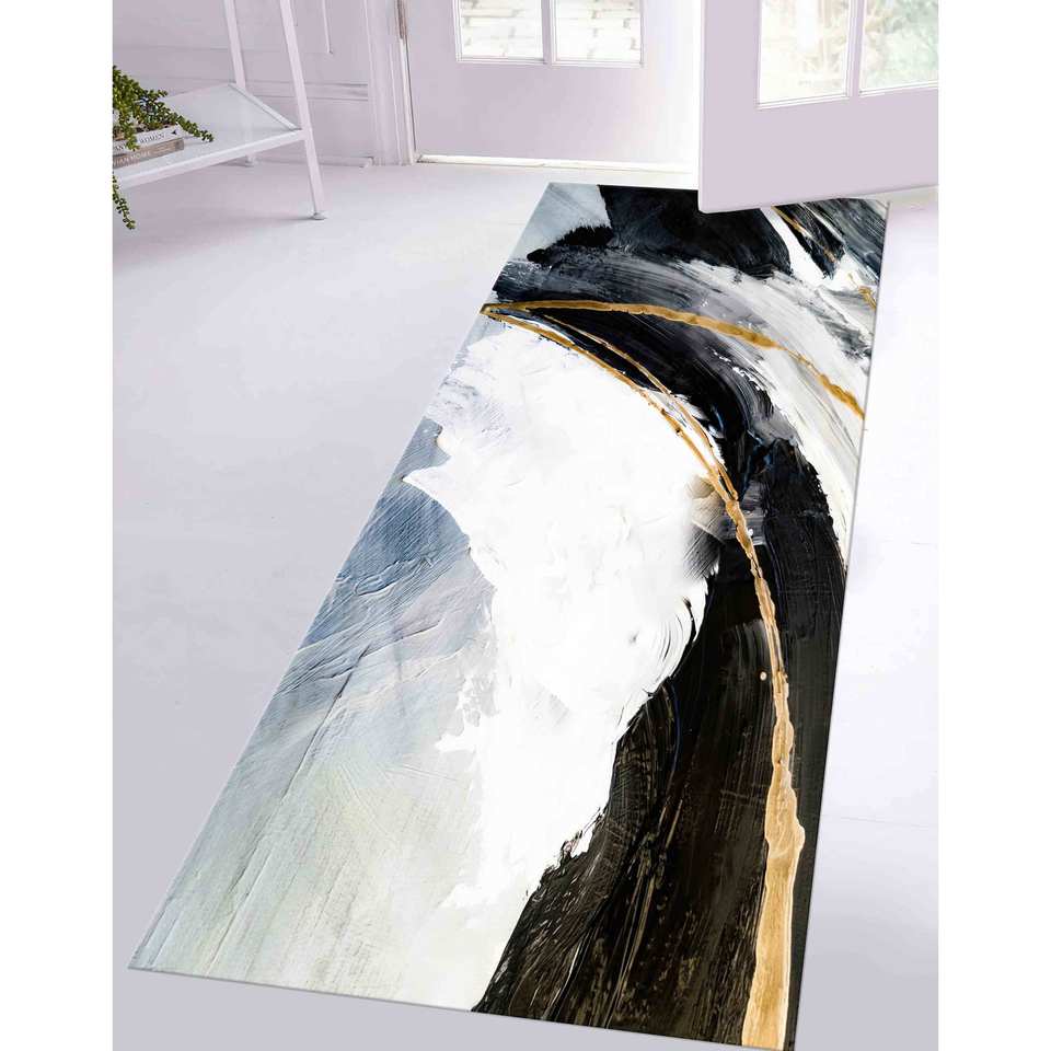 Tapis abstrait noir et or : Tapis moderne à accents marbrés, tapis en chenille