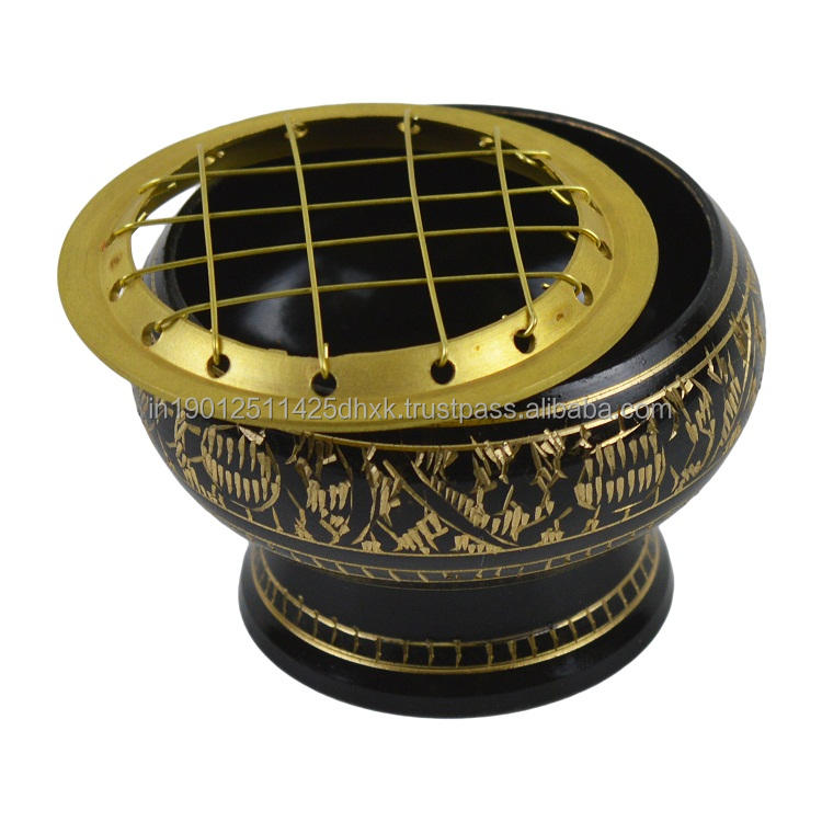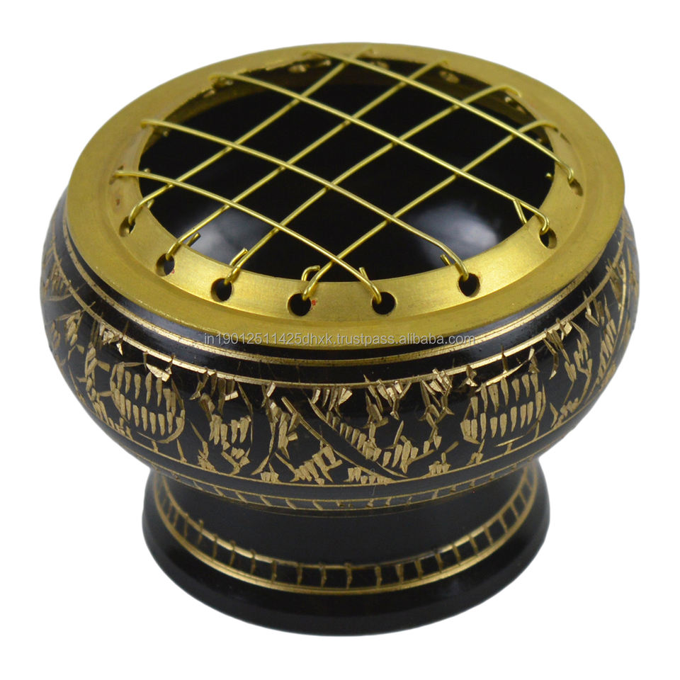 Brûleur d'encens noir et doré décors d'intérieur vaisselle porte-encens en laiton parfum naturel conception porte-encens charbon