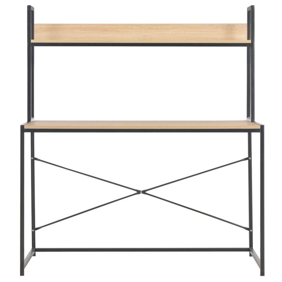 Bureau d'ordinateur en bois d'ingénierie noir et chêne avec structure en métal thermolaqué, meuble durable et élégant