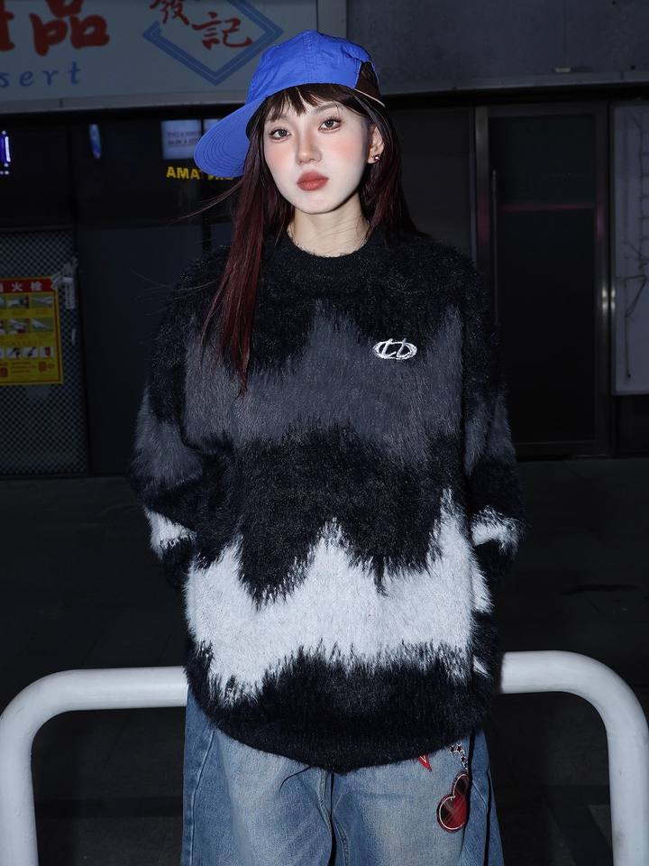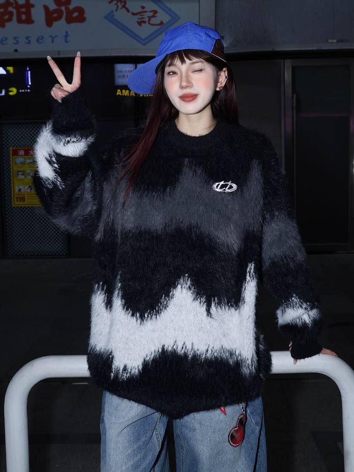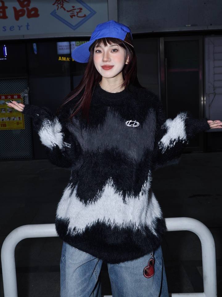 Black and White Color-block Soft Couple Sweaters, Autumn and Winter Loose and Lazy Style Street Trendy Brand Knitwear for Men