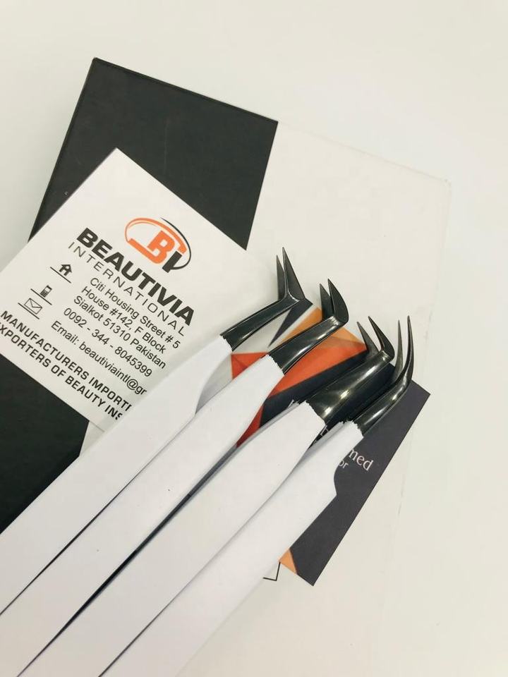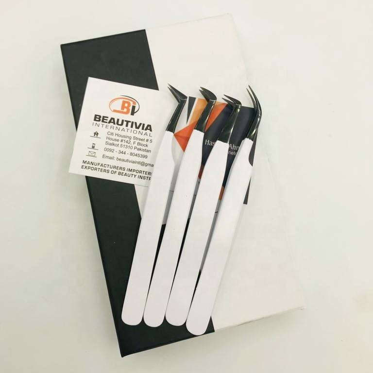 Pince à cils professionnelle personnalisable, à pointe fine, à prise ferme, en acier inoxydable noir et blanc avec revêtement en poudre, durable