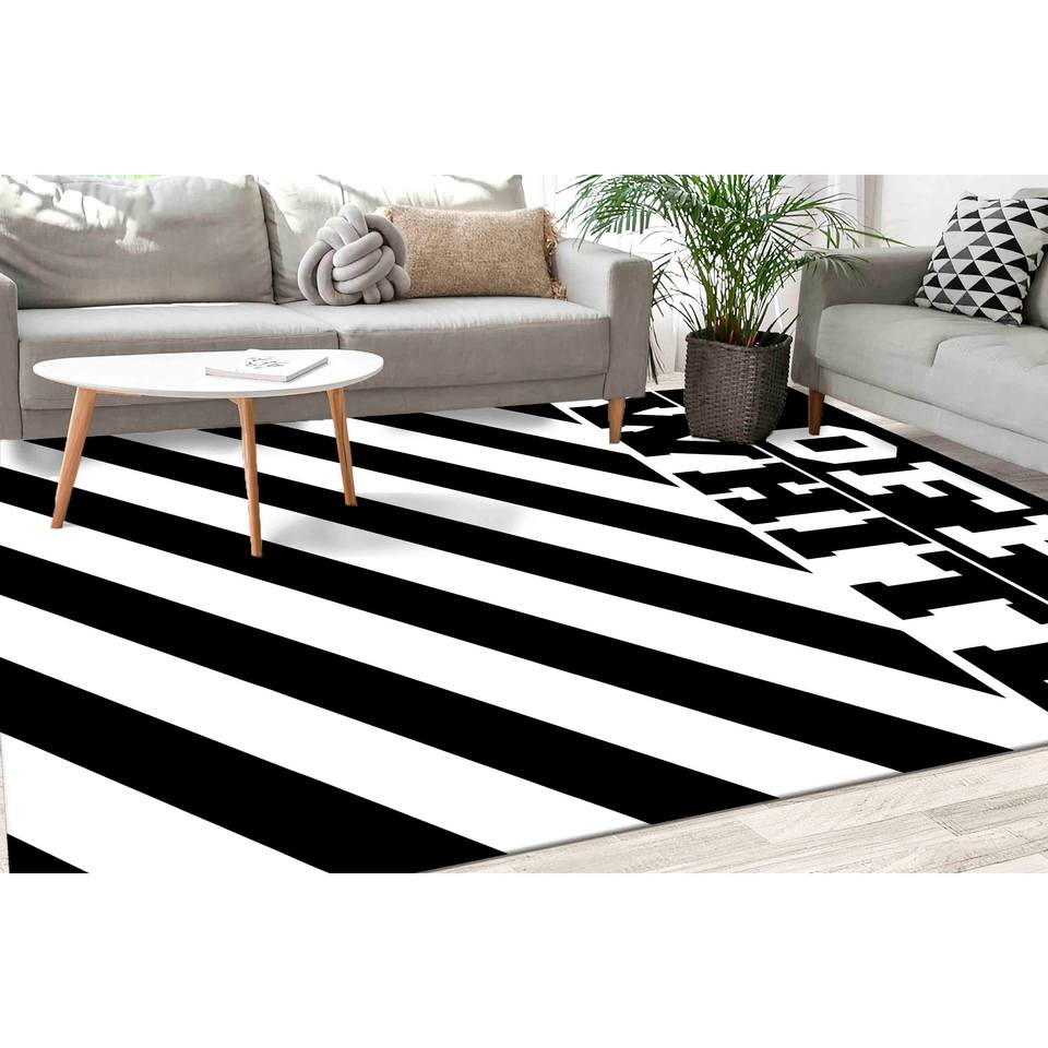 Tapis en laine patchwork noir et blanc, écologique, traditionnel et moderne, avec envers en latex