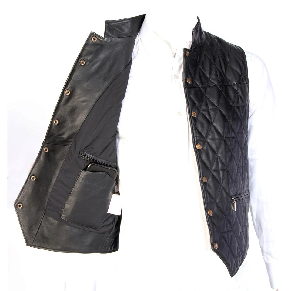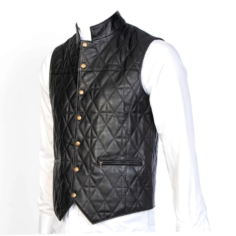 Veste en cuir véritable de luxe haut de gamme noire Vêtement d'extérieur Respirant avec boutons pression dorés