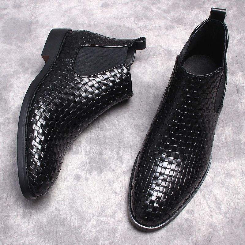 Bottes de cheville pour homme en cuir véritable de haute qualité, motif tissé noir, antidérapantes, élégantes et luxueuses - JiuZhou C12-9 Massage