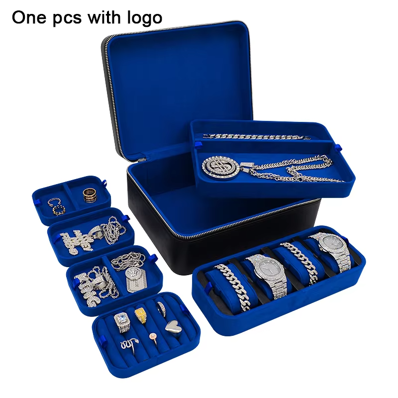 Black leather jewelry box for watches, bracelets and other accessories, PU material, portable and large capacity.