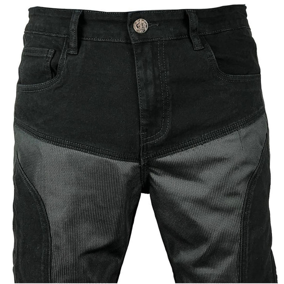 Black men motorcycle biker jeans denim with reinforced areas for added protection and style with comfortable fabric high quality