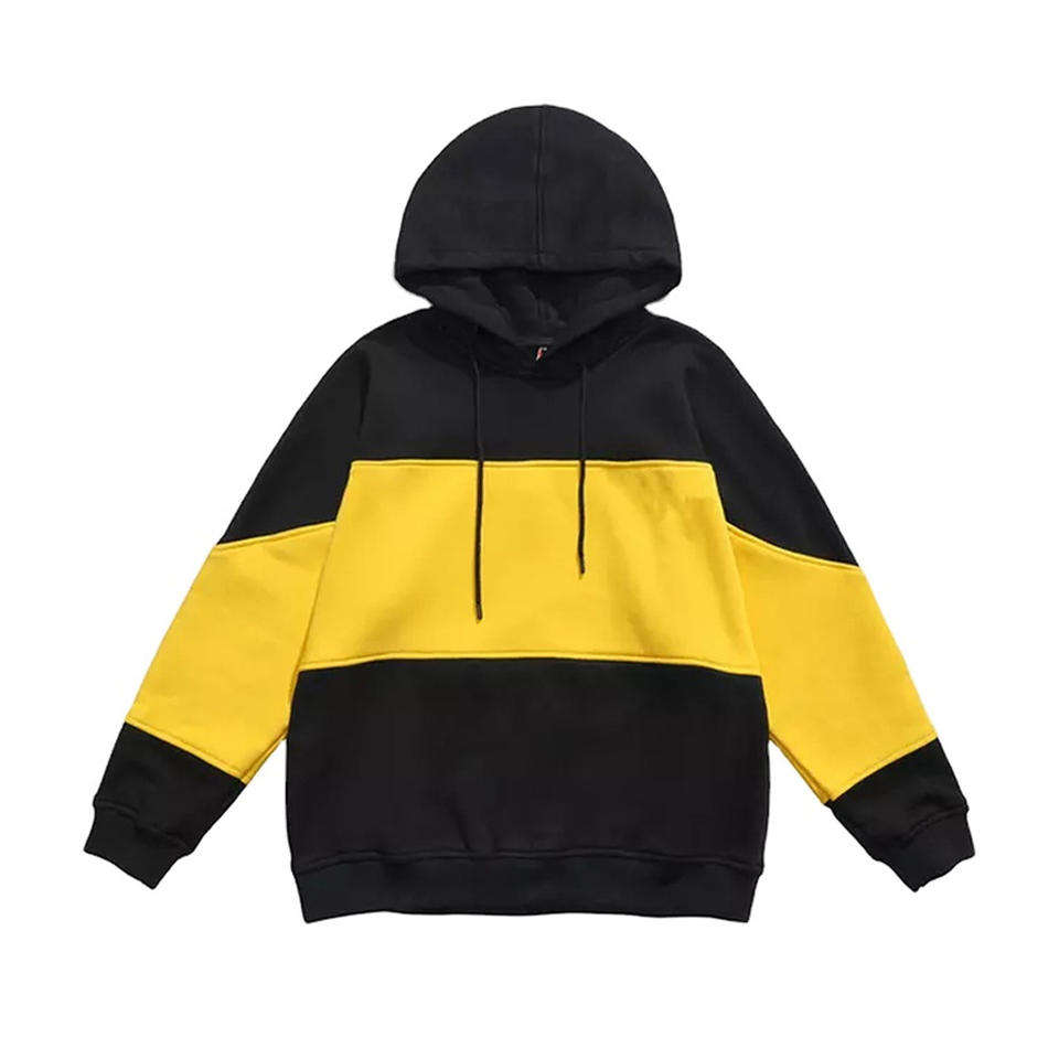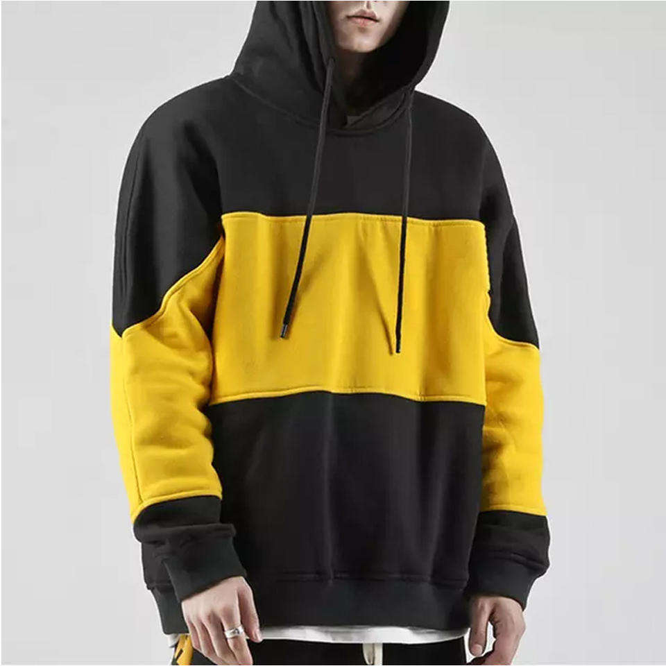 Black yellow color block hoodie for men and women stylish warm pullover casual streetwear soft fleece winter comfortable