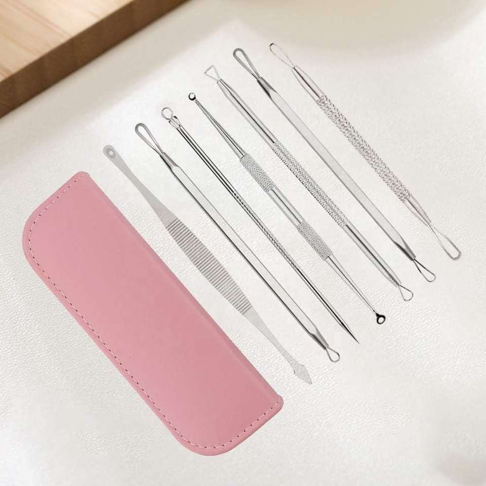 Kit de 7 outils pour éliminer les points noirs et les comédons avec étui en cuir