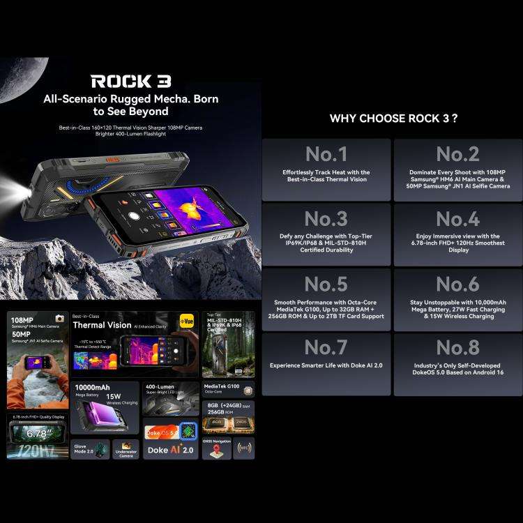 Blackview ROCK 3 Téléphone Robuste, Caméra Thermique