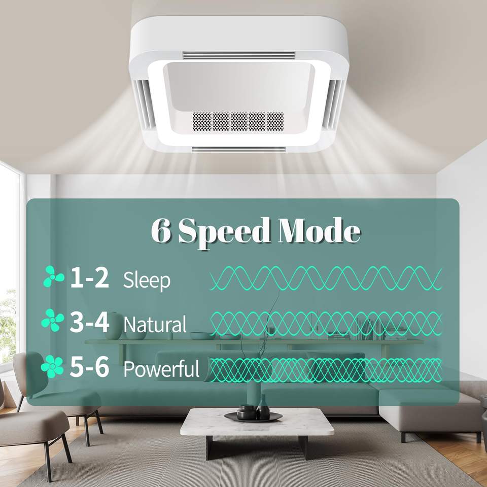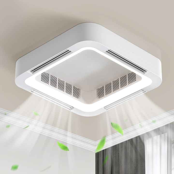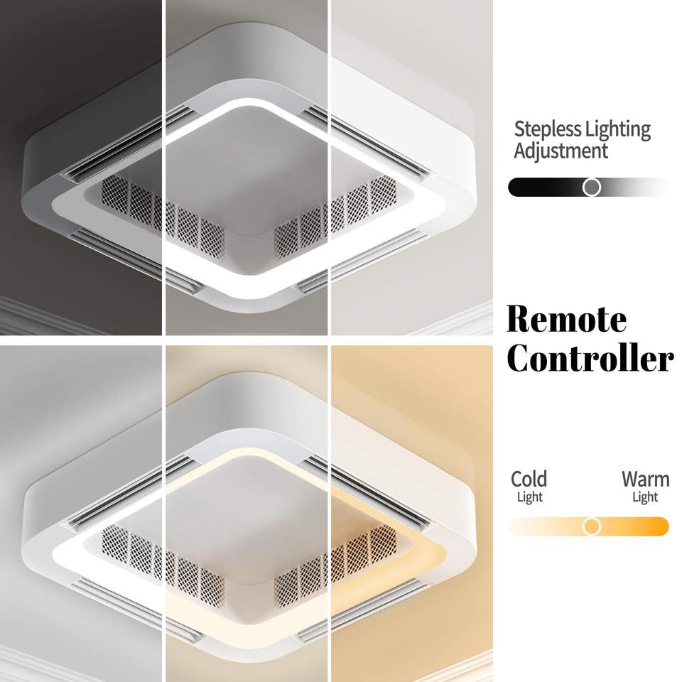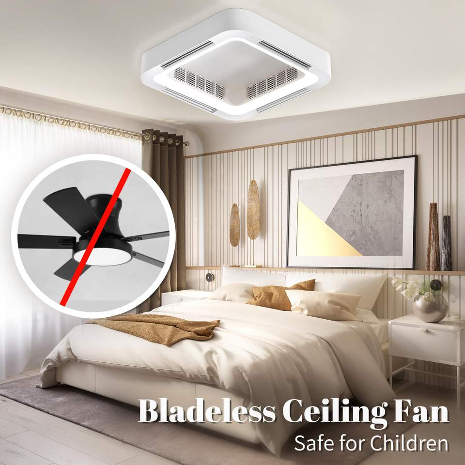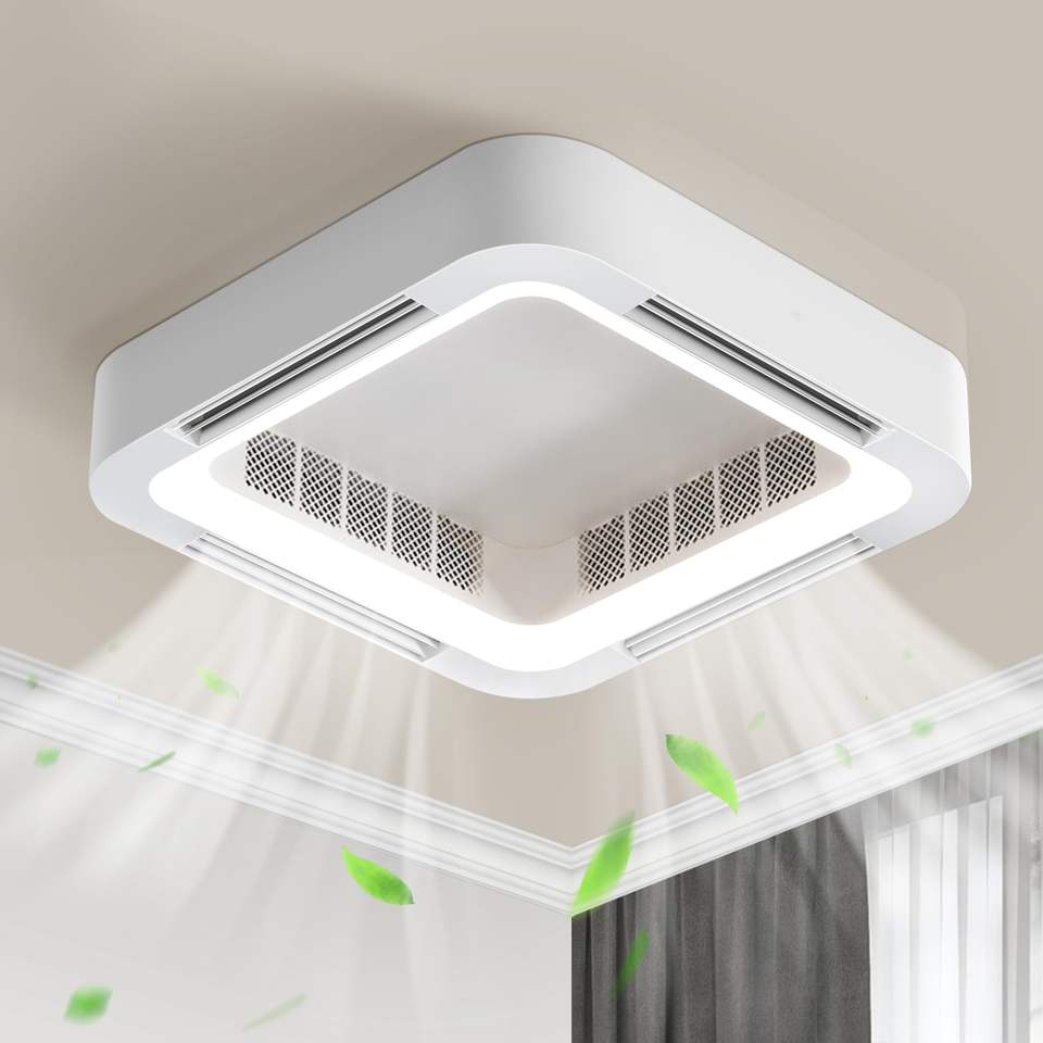 Ventilateur de plafond sans pales avec lumière et télécommande, ventilateur de plafond encastré moderne avec ventilateur à inverter et lumière à intensité variable