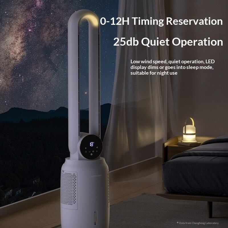 Ventilateur tour sans pales avec télécommande, en plastique ABS, ions négatifs et mode veille – Silencieux, refroidissement par eau pour la maison et les dortoirs