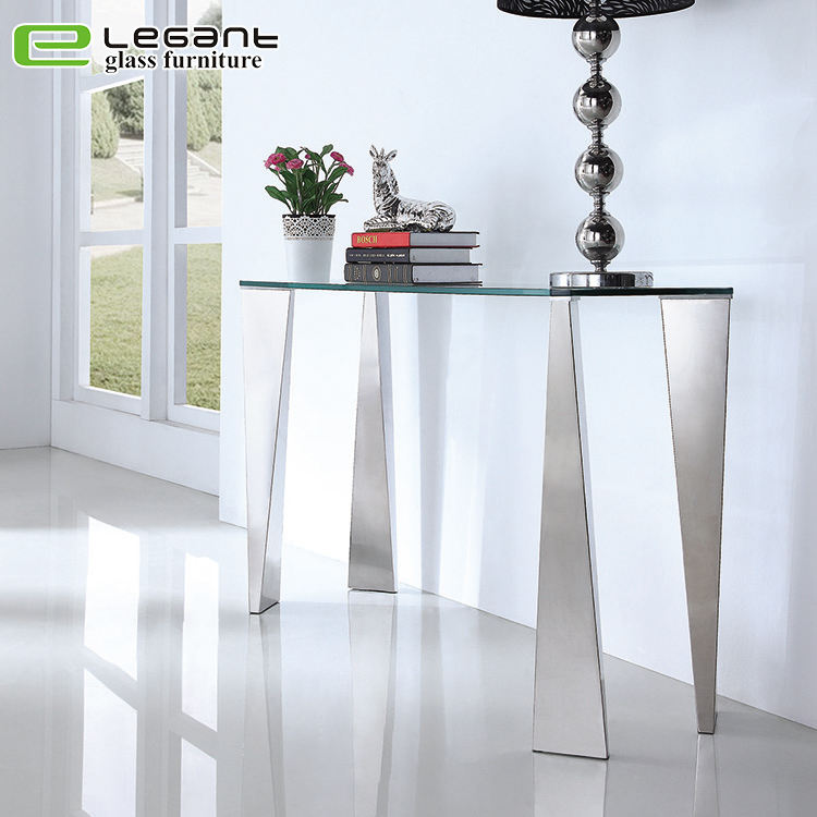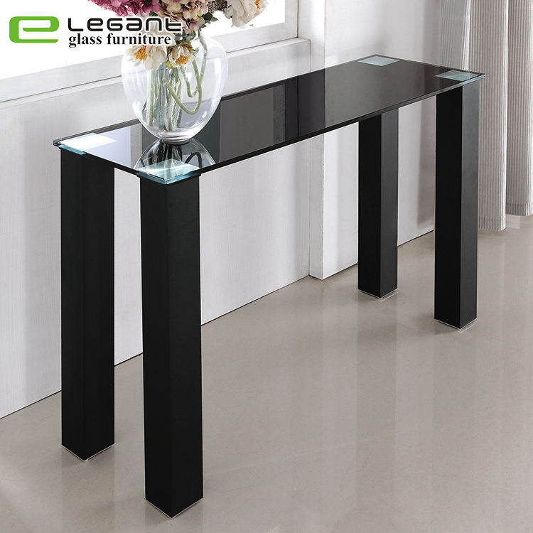 Blanc Trempé Verre Console Table avec Jambes De Fer