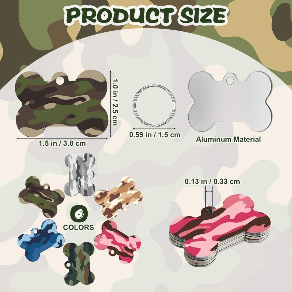 Étiquette d'identification de chien en forme d'os vierge en alliage d'aluminium imprimé UV pendentif de collier d'étiquette de nom d'animal de compagnie avec porte-clés pour la fabrication d'étiquettes Souvenirs