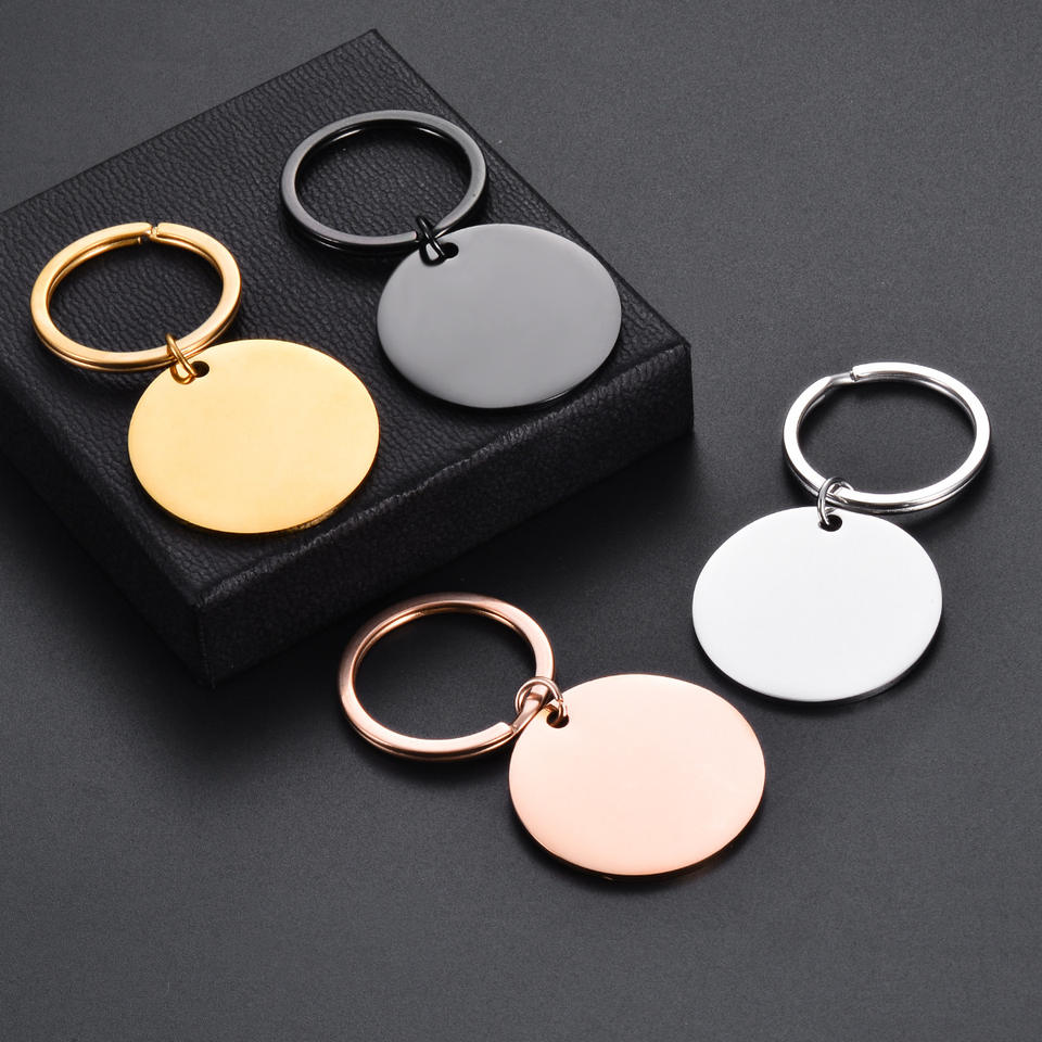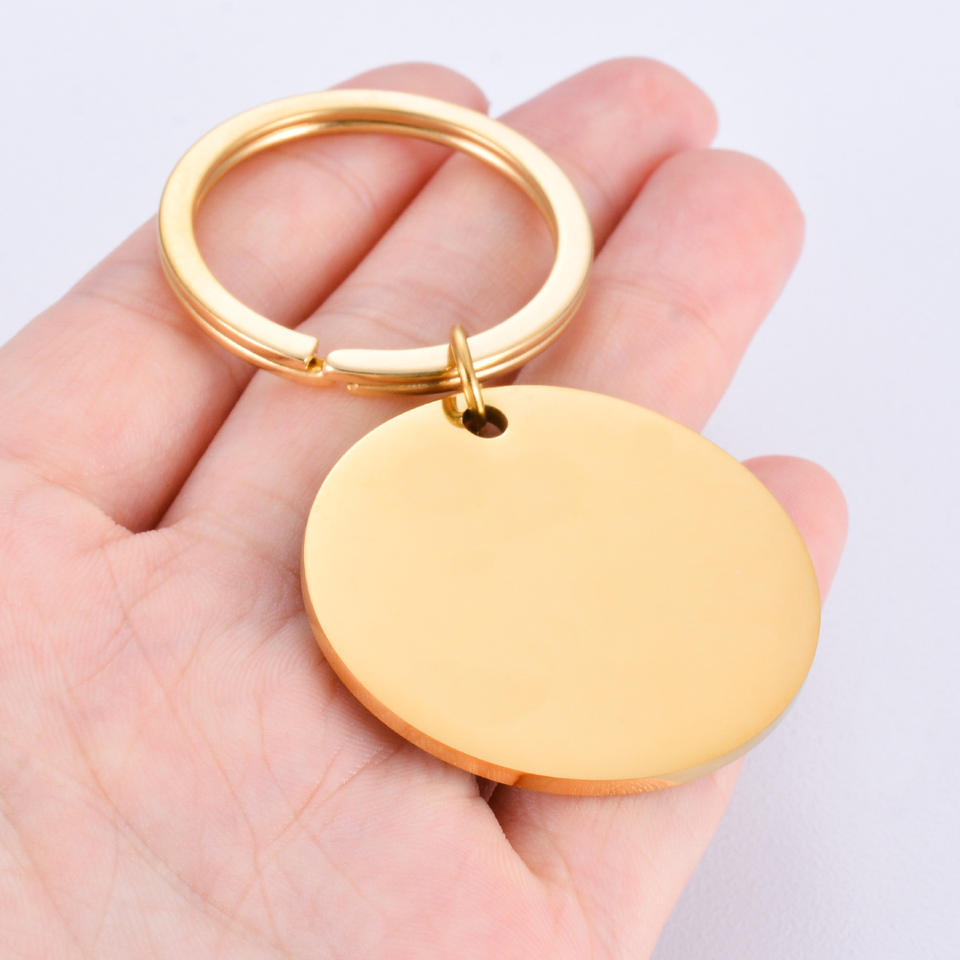 Porte-clés rond en acier inoxydable personnalisable avec gravure, 25 mm 30 mm, avec anneau fendu