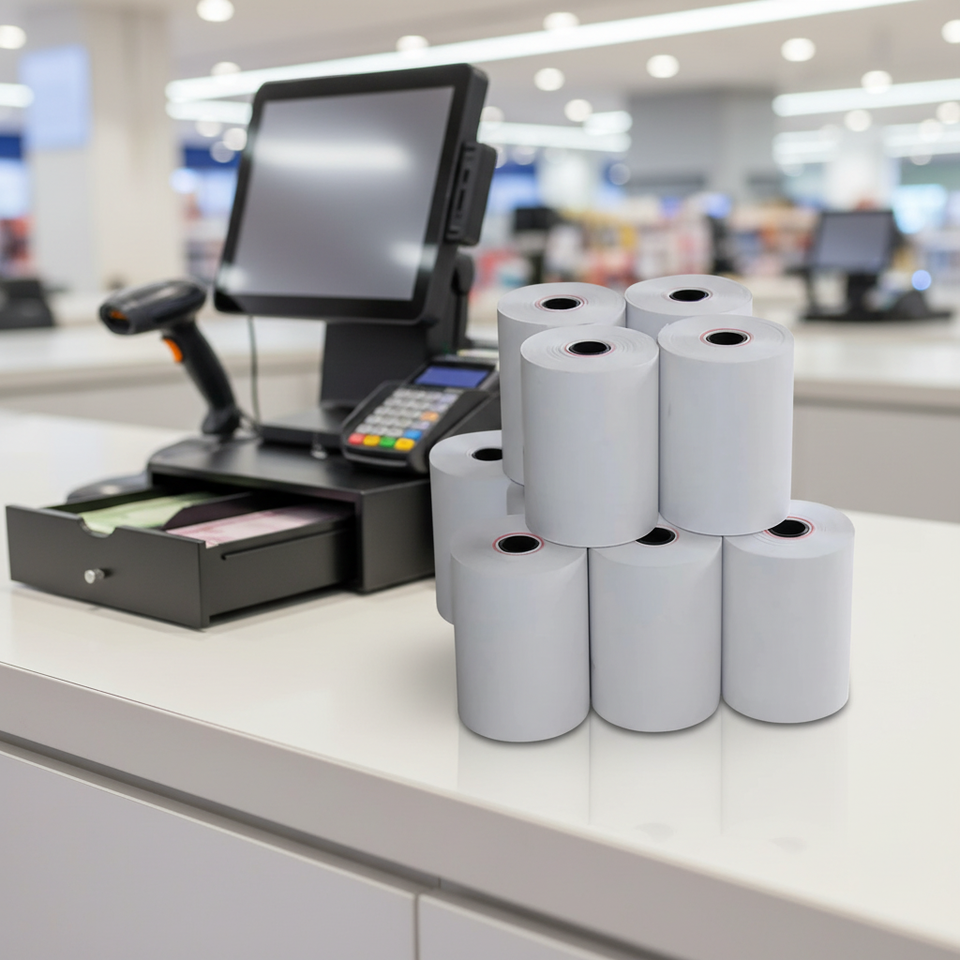 Rouleau de papier thermique vierge pour caisse enregistreuse 80x80 65gsm simple couche