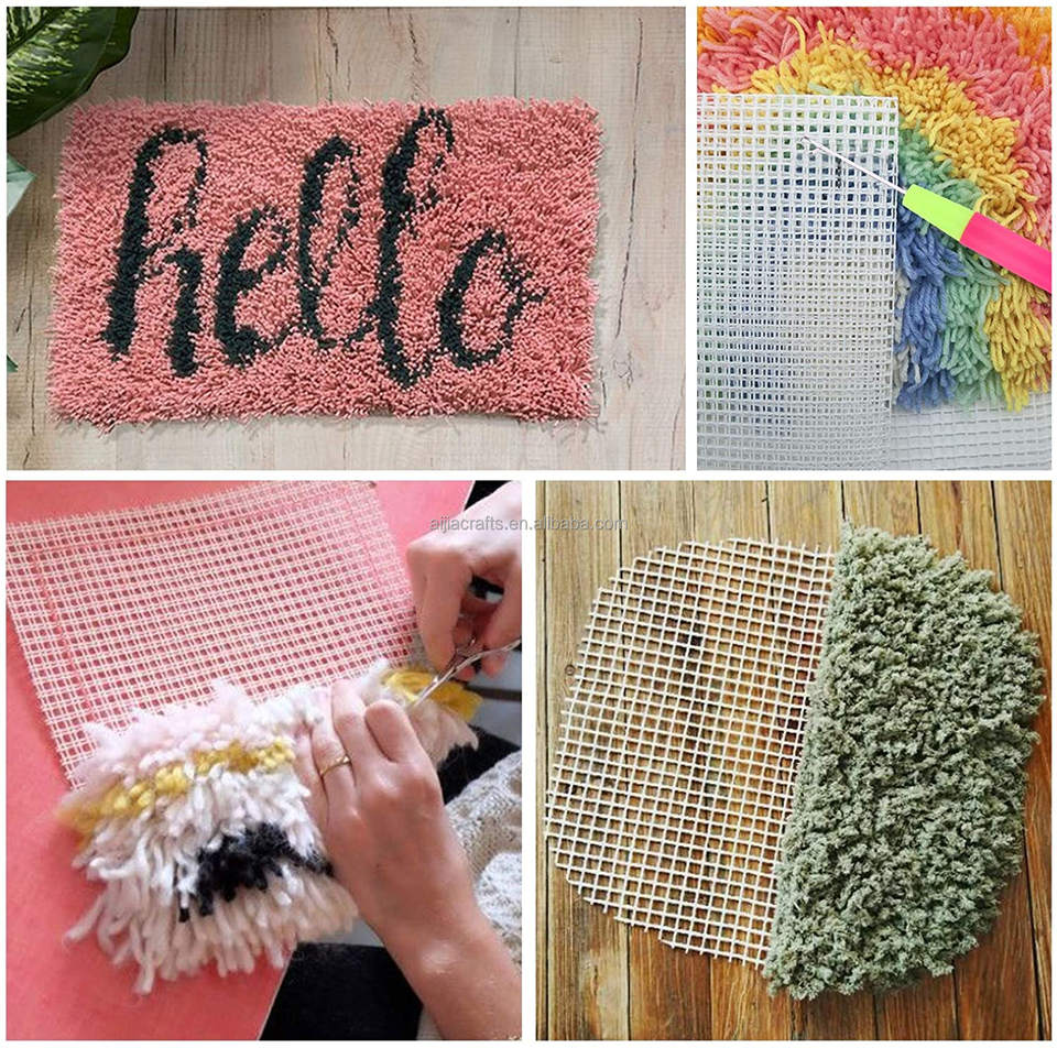 Kit de toile de maille d'accrochage de tapis vierge avec outil de crochet de loquet plié en bois, toile en plastique de kit d'accrochage de tapis