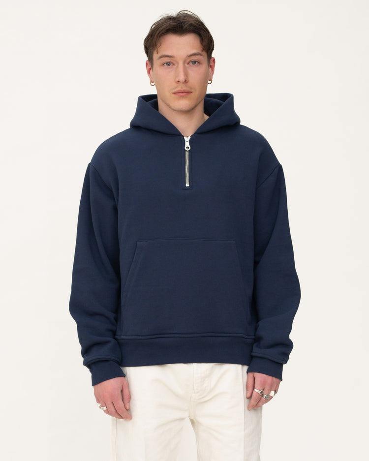 Sweat vierge personnalisé hommes couleur unie demi fermeture éclair à capuche lâche décontracté hommes sweats à capuche et sweat-shirts