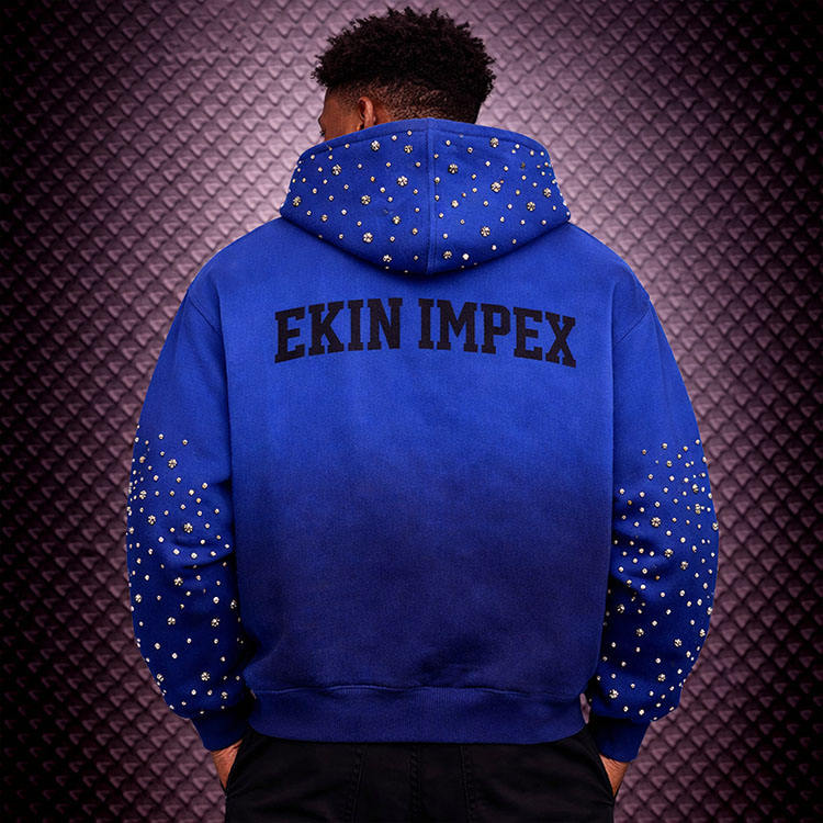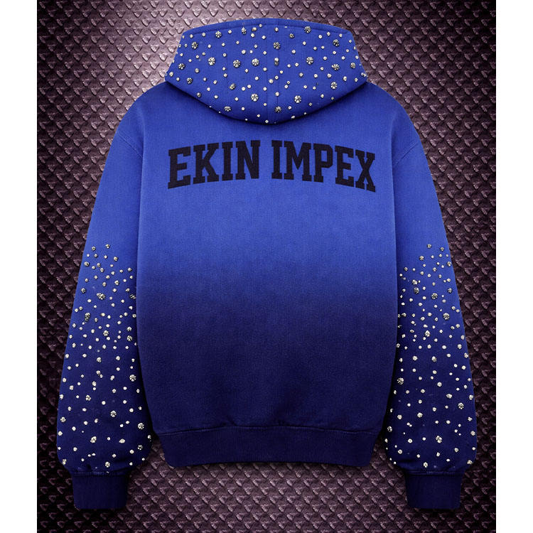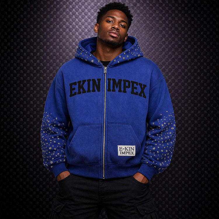 Veste zippée vierge personnalisée, délavée à l'acide, 450 g/m², style streetwear, 100 % coton, avec strass et broderie 3D, effet soleil délavé et vieilli, coupe oversize