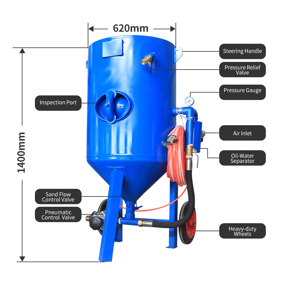 Type de média abrasif:Grenaille d'acier, Grit d'acier, Billes de verre, Oxyde d'aluminium, Sable