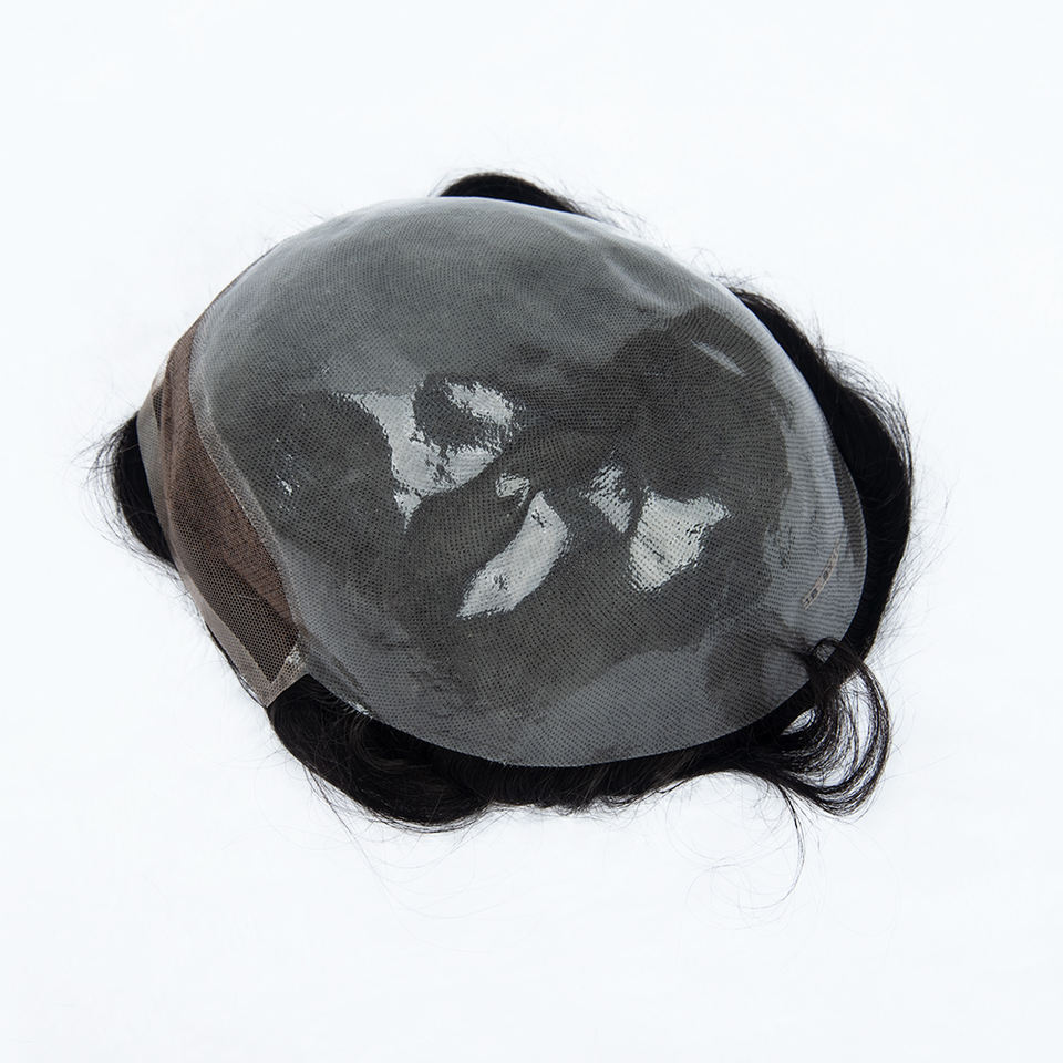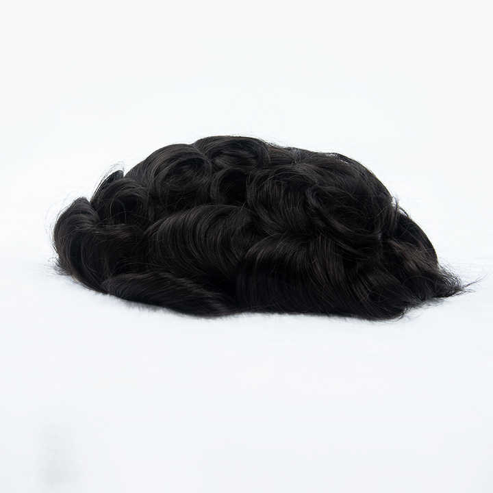 Bleached Knots Lace Front Wavy Natural Human Hair Thin PU Skin Base Hairpiece Men Toupee
