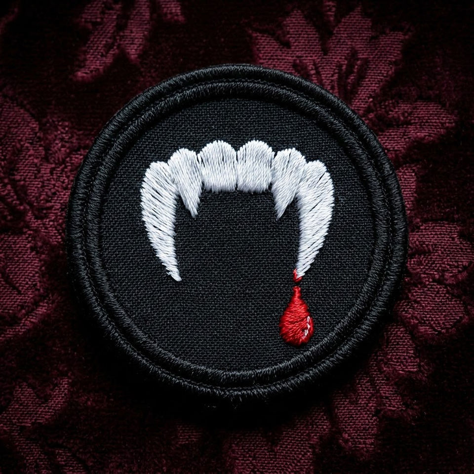 Patch brodé rond thermocollant 'Cercueil Saignant', badge gothique d'horreur, applique sang de vampire, vente en gros, pour décoration DIY de vestes et gilets