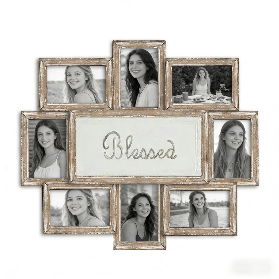 Collage photo mural en bois fait main « Famille Bénie », format 6x8, 12 ouvertures, multi-photos, pour afficher les souvenirs à la maison