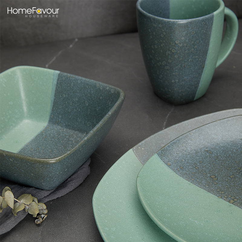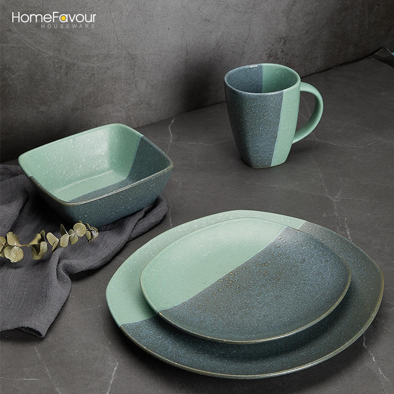 Blue Nordic tableware kiln glazed ceramic salad flat round plate dinnerware set