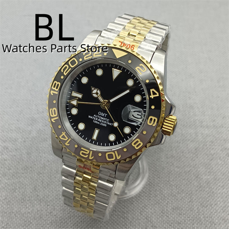 Bliger Watch 40mm Hommes TwoTone Argent Or avec Céramique Noir Gris Lunette Jubilé Bracelet NH34 Montre pour Homme