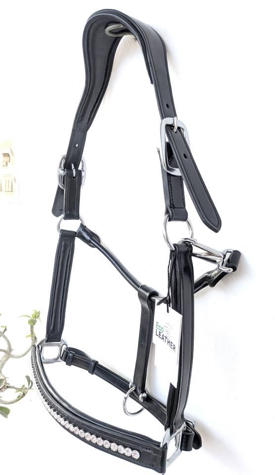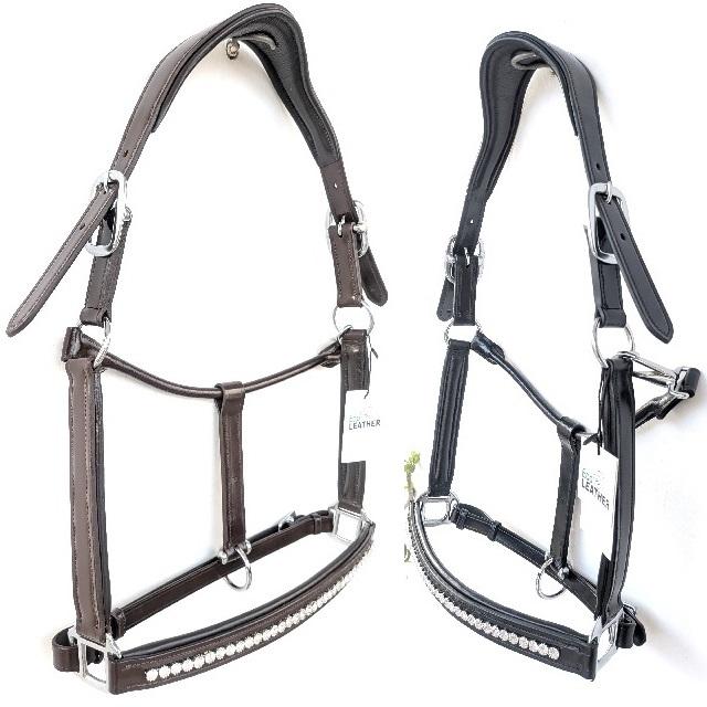 Halter de cheval en cuir avec incrustations de cristal et couronne anatomique