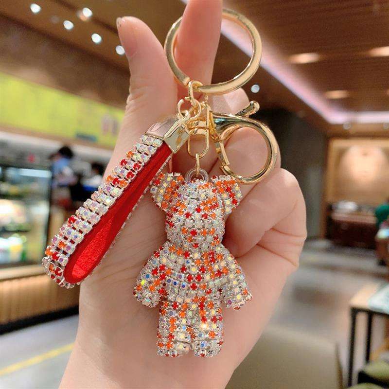 Bling mignon ours voiture porte-clés porte-clés porte-clés accessoire pendentif avec porte-clés en strass scintillant