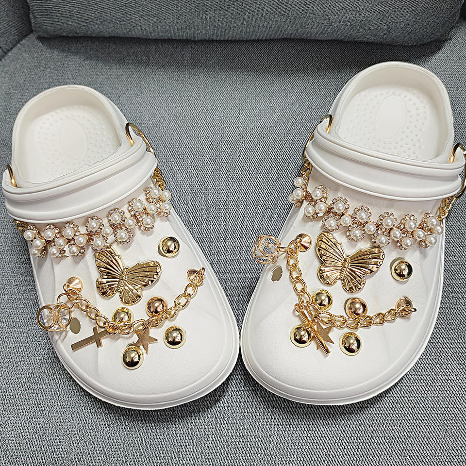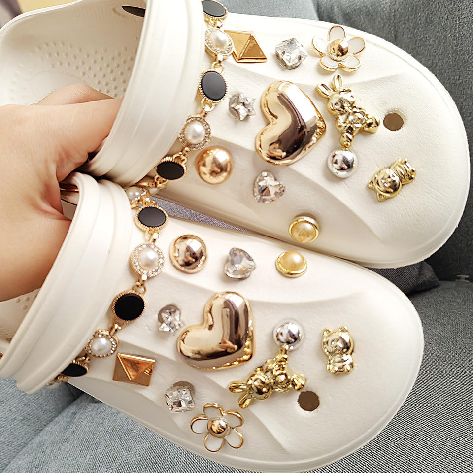 Bling Golden Charms Sabot Designer Décorations De Chaussures Cadeaux D'anniversaire Party Favors Boucle De Chaussure En Métal Designer Charmes Charmes De Luxe