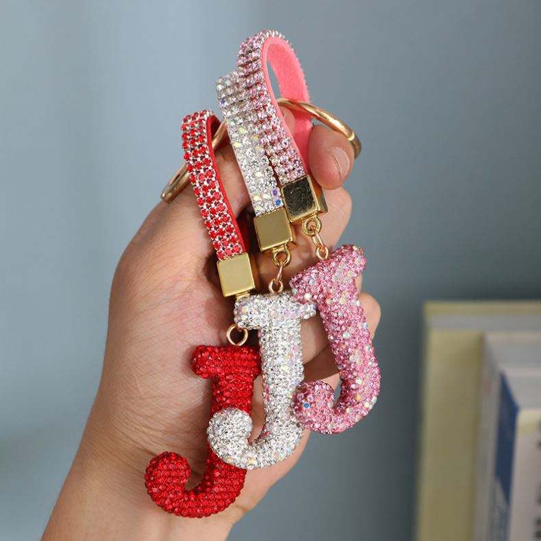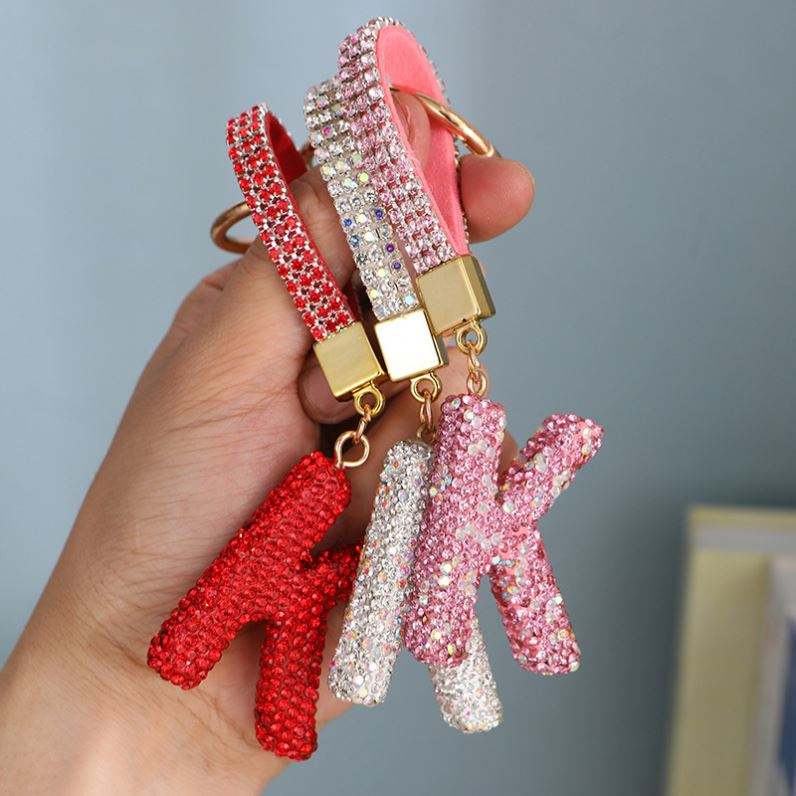 Porte-clés Lettre Scintillante, Porte-clés Initiales Brillantes, Lettres Diamantées, Dragonne de Clé pour Filles et Femmes, Décorations de Sac avec Logo Personnalisé