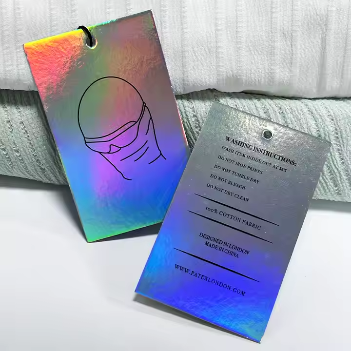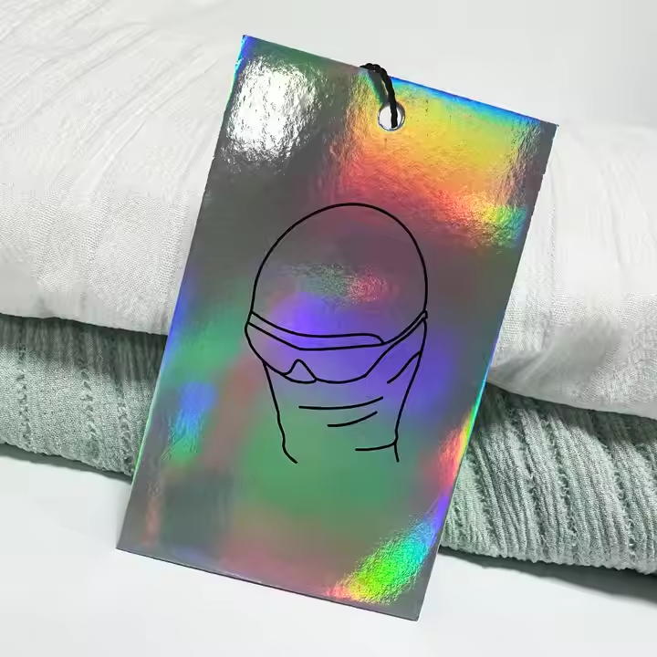 Bling Rainbow Holographic Tag,Custom Logo Accessories Seal Clothing Paper Label Holographic Swing Hang Tag With Hologram