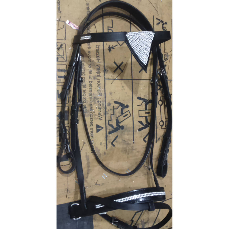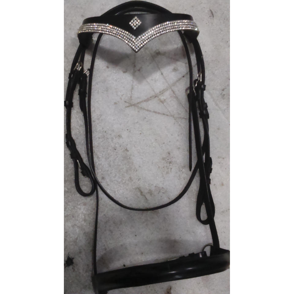 Bride en cuir cristal Bling V avec rênes Black IN;dollar 8 tailles plein cob Shetland
