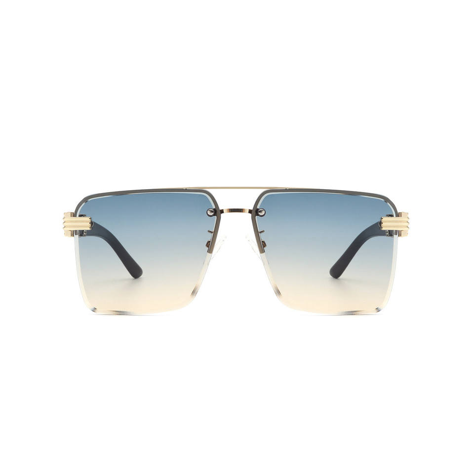 Blip - Lunettes de soleil carrées rétro teintées sans monture avec barre supérieure, style mode