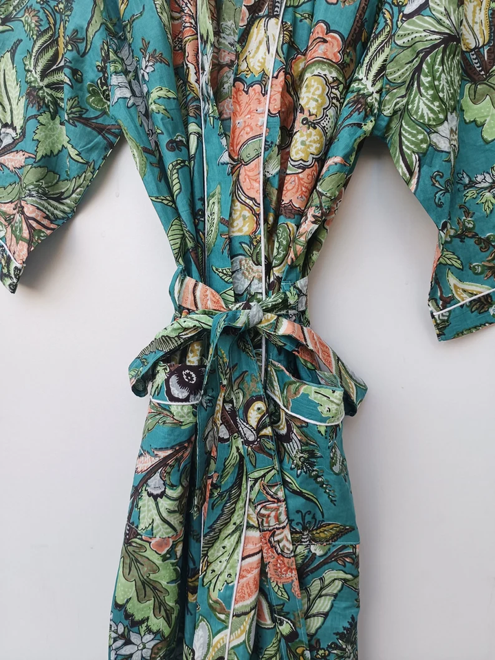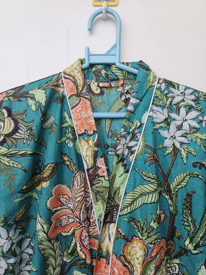 Robe Kimono Femme Imprimée Motif Dessin Animé 100% Coton, Chemise de Nuit d'Été Faite Main ODM, Col en V, Taille Élastique, Longueur Genou, Douce et Respirante