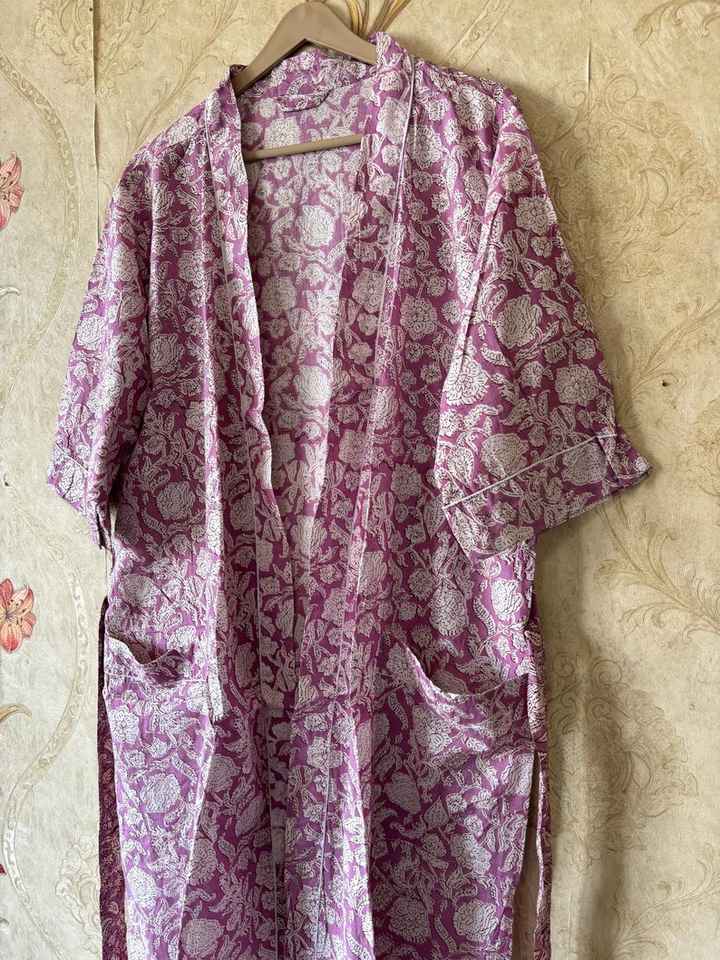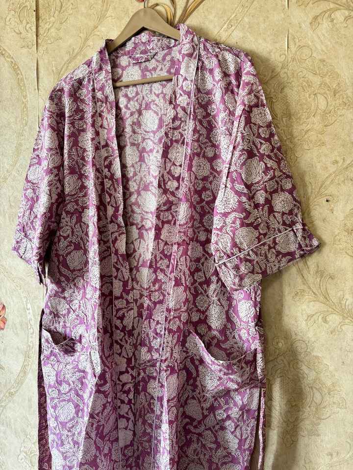 Robe kimono d'été à col en V en coton imprimé floral fait main, séchage rapide, longueur intégrale, pour demoiselle d'honneur