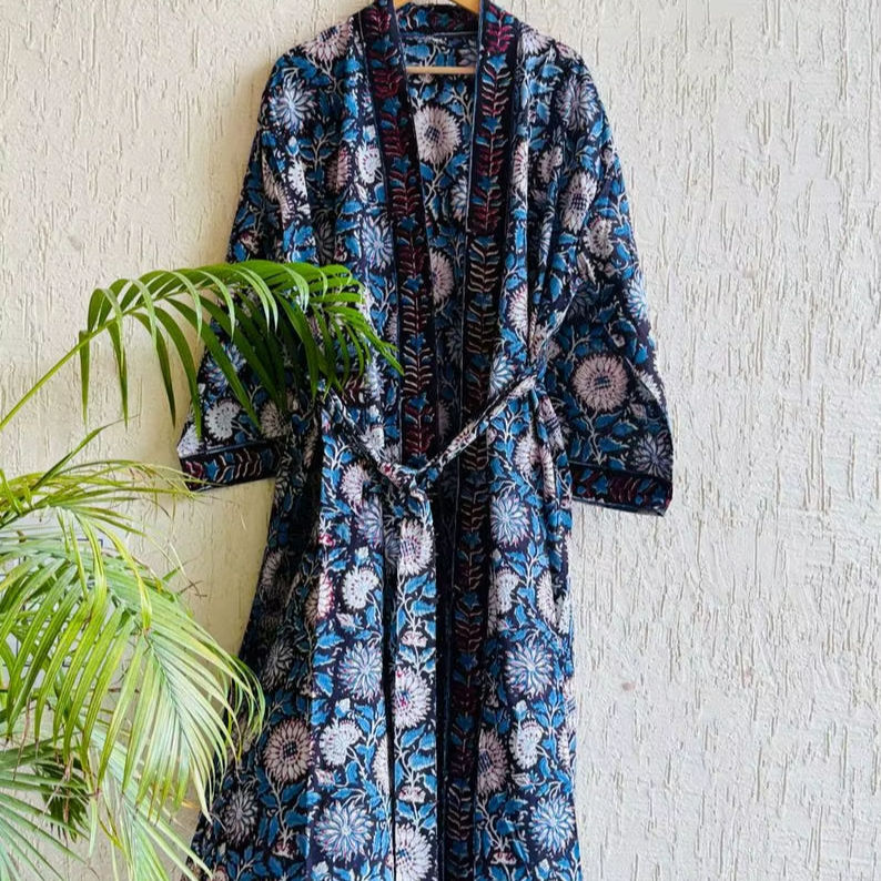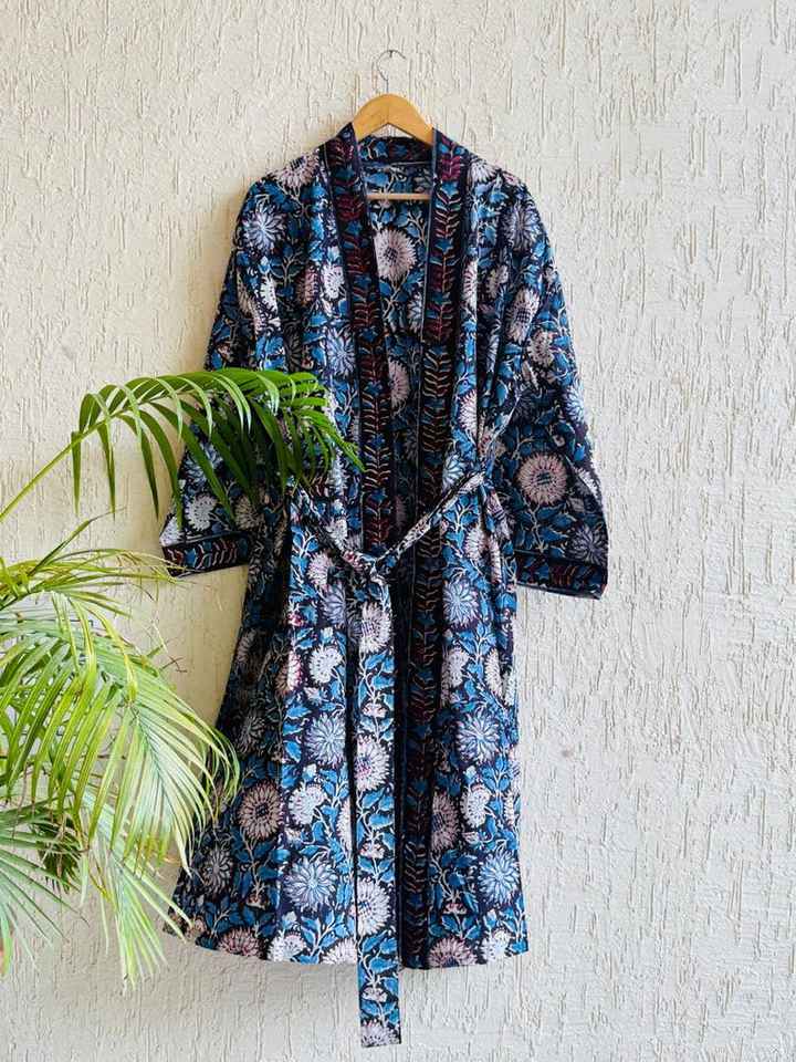 Bloc imprimé coton Kimono Robe fait à la main indien vêtements de détente Kimono plage couvrir Robe de lune de miel