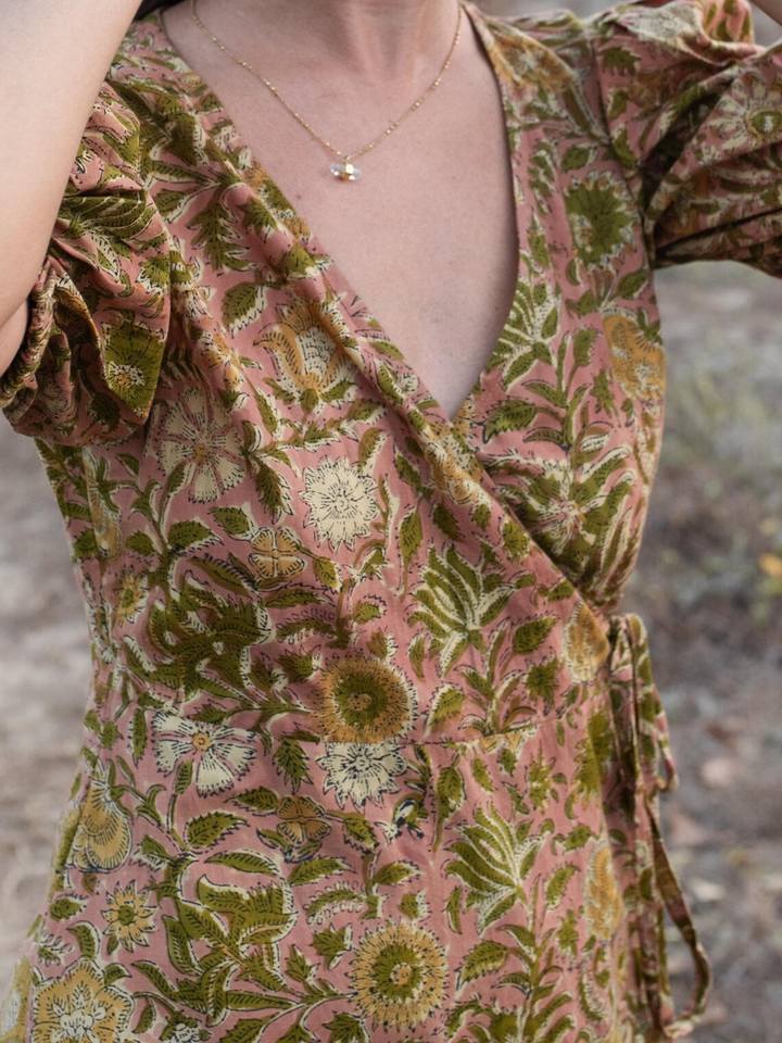 Block Print Maxi Warp Dress Indian Cotton Long Dress Tiered Midi Custom Comfy Dress
