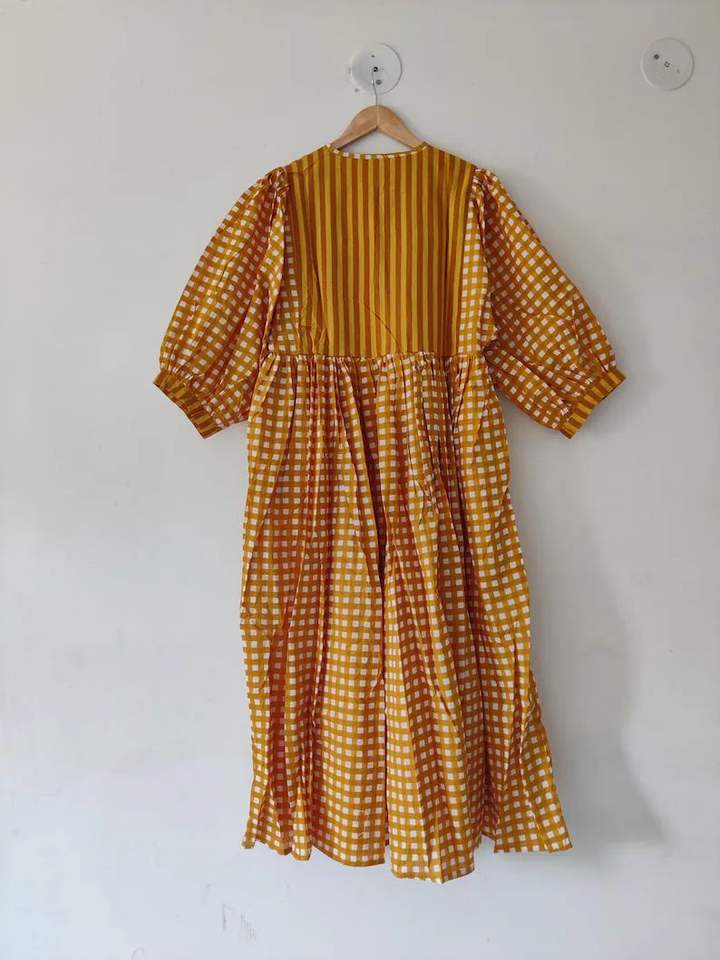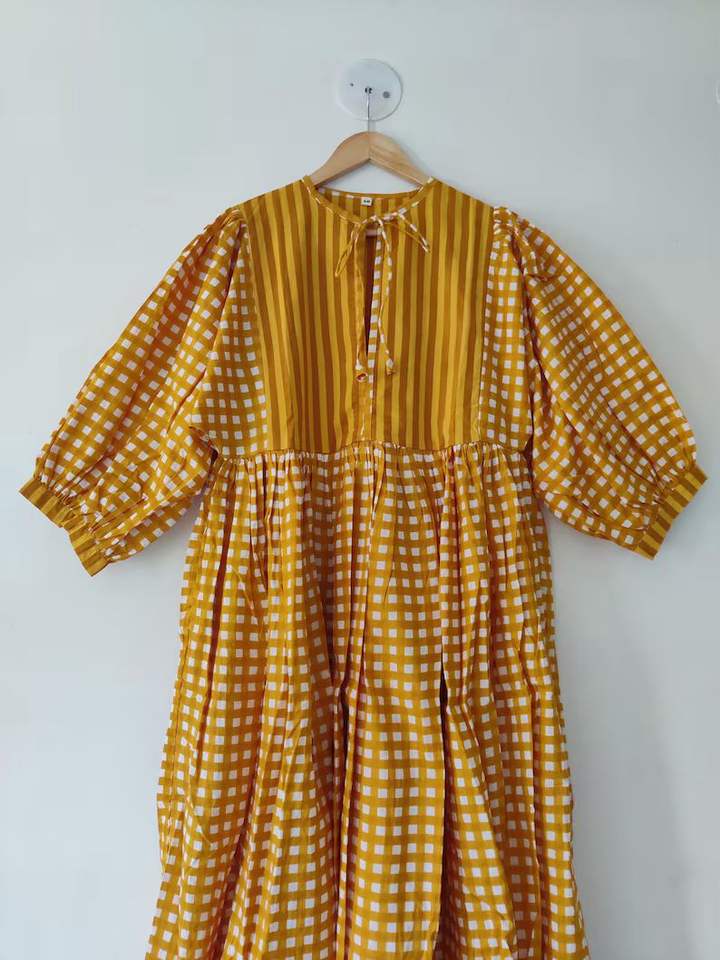 Robe mi-longue à imprimé bloc, mini robe, robe longue à carreaux imprimé bloc col profond avec ficelle plus proche