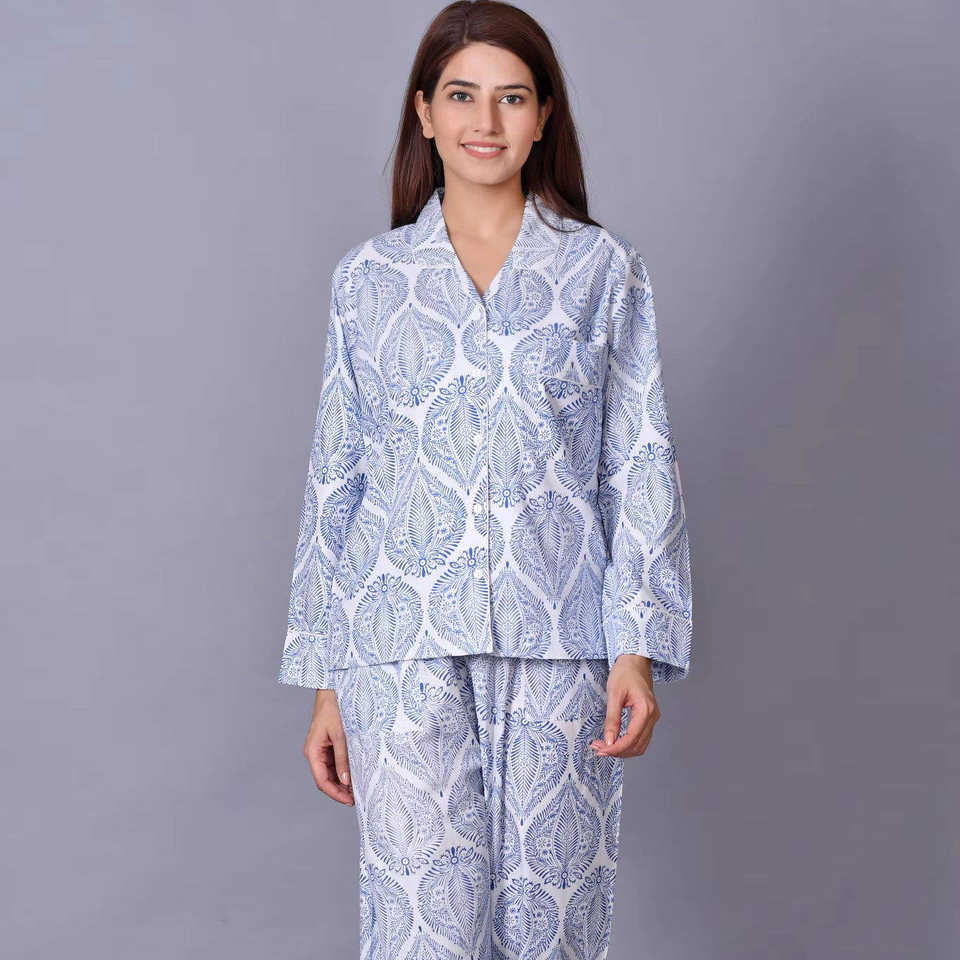 Ensemble de pyjama en coton pour femmes grandes tailles, imprimé floral, logo personnalisable sur le devant, vêtements de nuit confortables