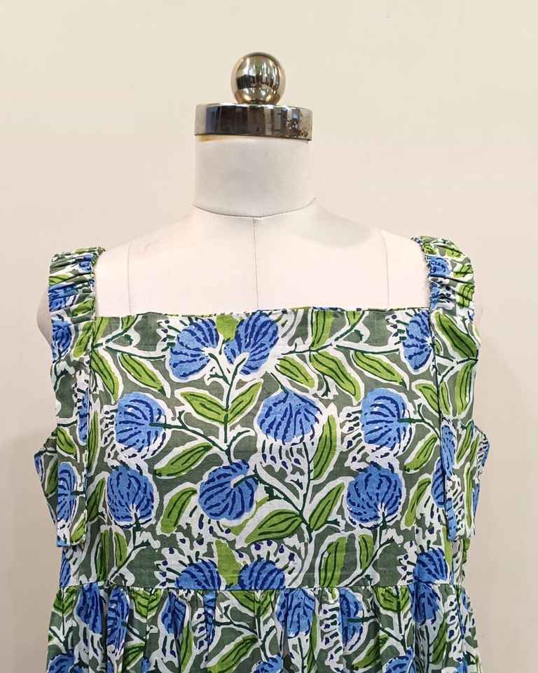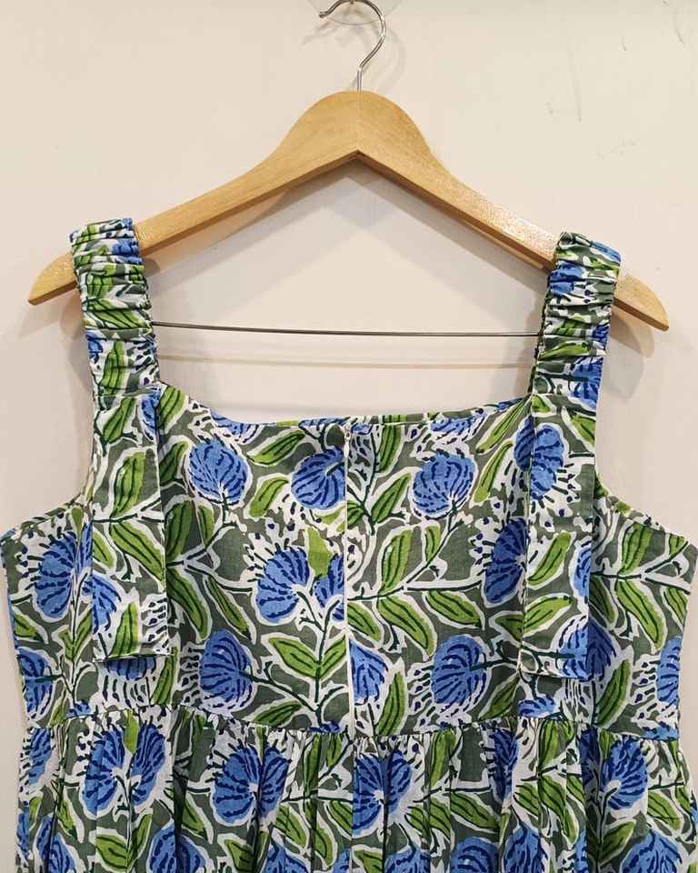 Robe midi en coton imprimé à la main Bretelles élastiques réglables Vêtement de plage Robe d'été Chic sans effort Robe bohème